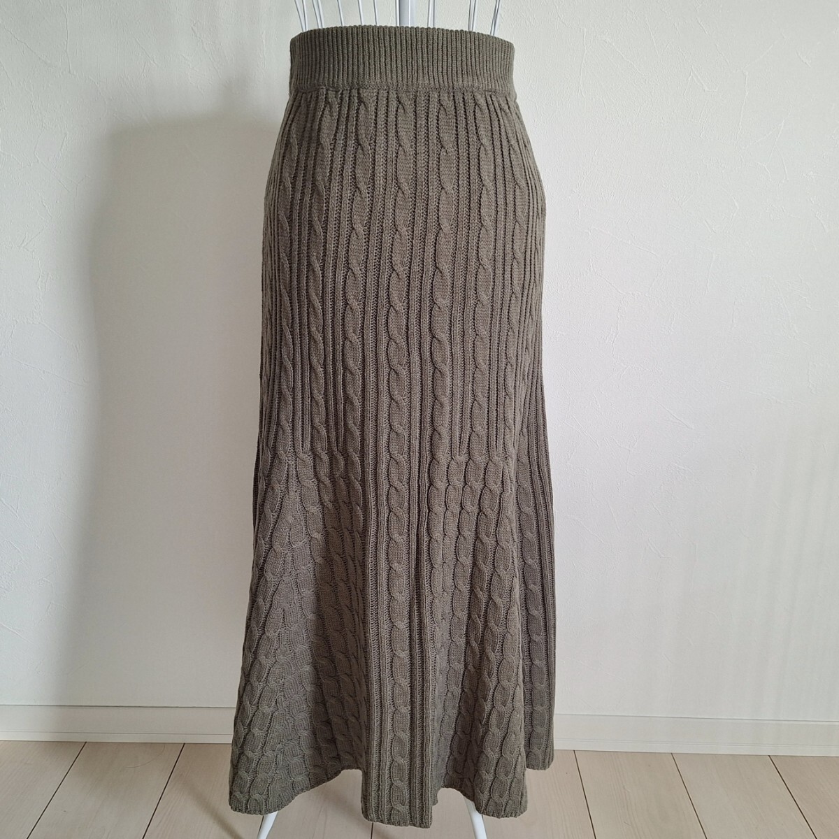 - ◆美品◆カーキ◆ケーブル編み◆ニットロングスカート◆マーメイド◆M◆