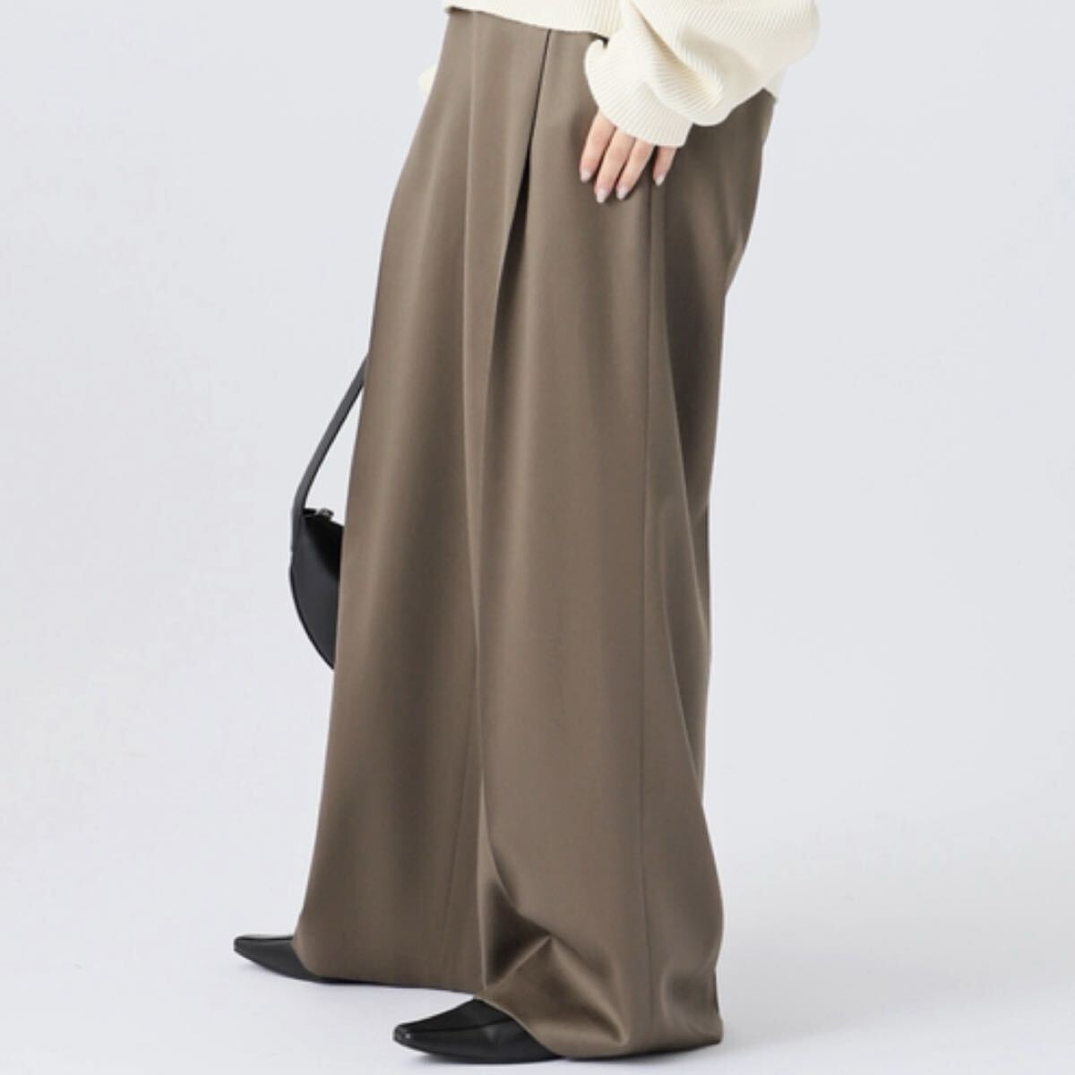 - APSTUDIOウールサテンタックパンツワイドパンツエーピースラックスオフィス茶ブラウン