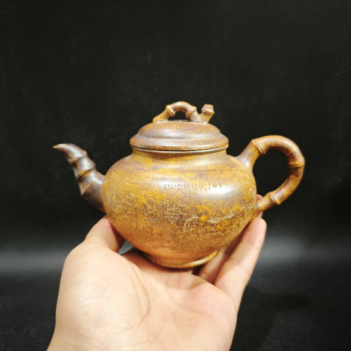 - 【超珍館蔵】紫砂壺 竹節壺 顧景舟款 古紅窯燒 茶具 茶道品 置物 賞物 古賞物 古董品 古美術品 時代物 旧家蔵出 稀少珍蔵品