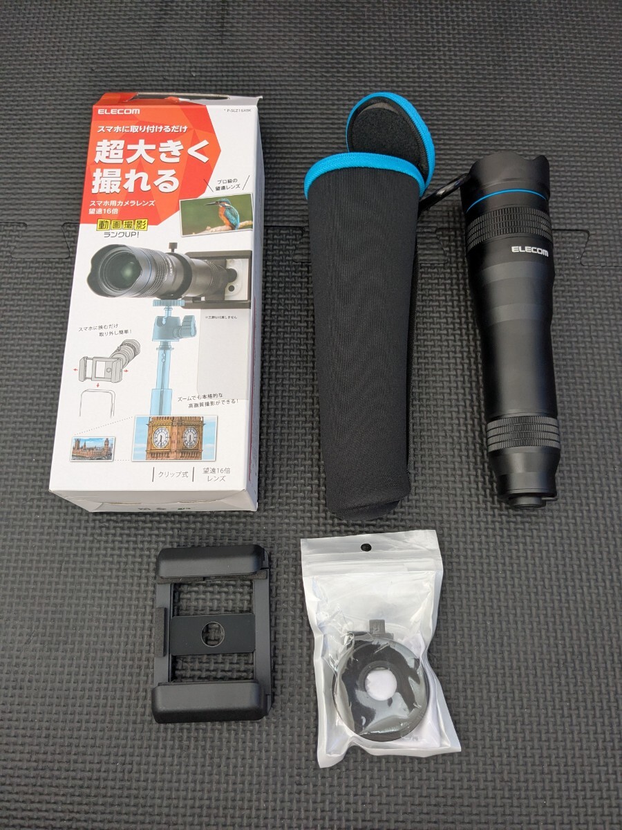 - ◎0710u0213 エレコム スマホ 望遠レンズ 16倍 16× 外付け 挟むだけ FMC加工 ケラレ現象軽減 レンズキャップ付 P-SLZ16XBK