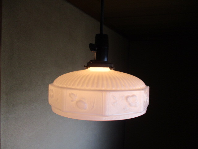 - 金魚朝顔花模様 乳白ガラス照明ランプ古民家再生リフォーム電笠電気インテリアレトロビンテージアンティーク