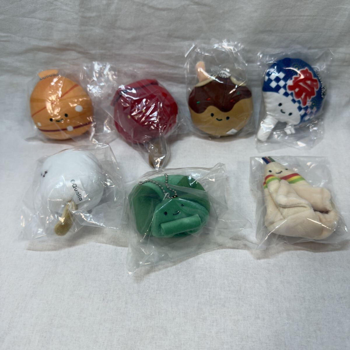 - 送料無料 にっこりーノ キャンプ お祭りのぬいぐるみ 7種セット ☆ クオリア マスコット ボールチェーン うちわ たこ焼き マシュマロ