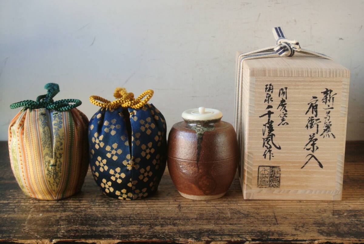 - 韓国人間国宝 千漢鳳 陶泉 肩衡茶入 替え蓋 仕覆 栞 共箱 本物保証 検】茶道具 鳳凰間道 利休梅