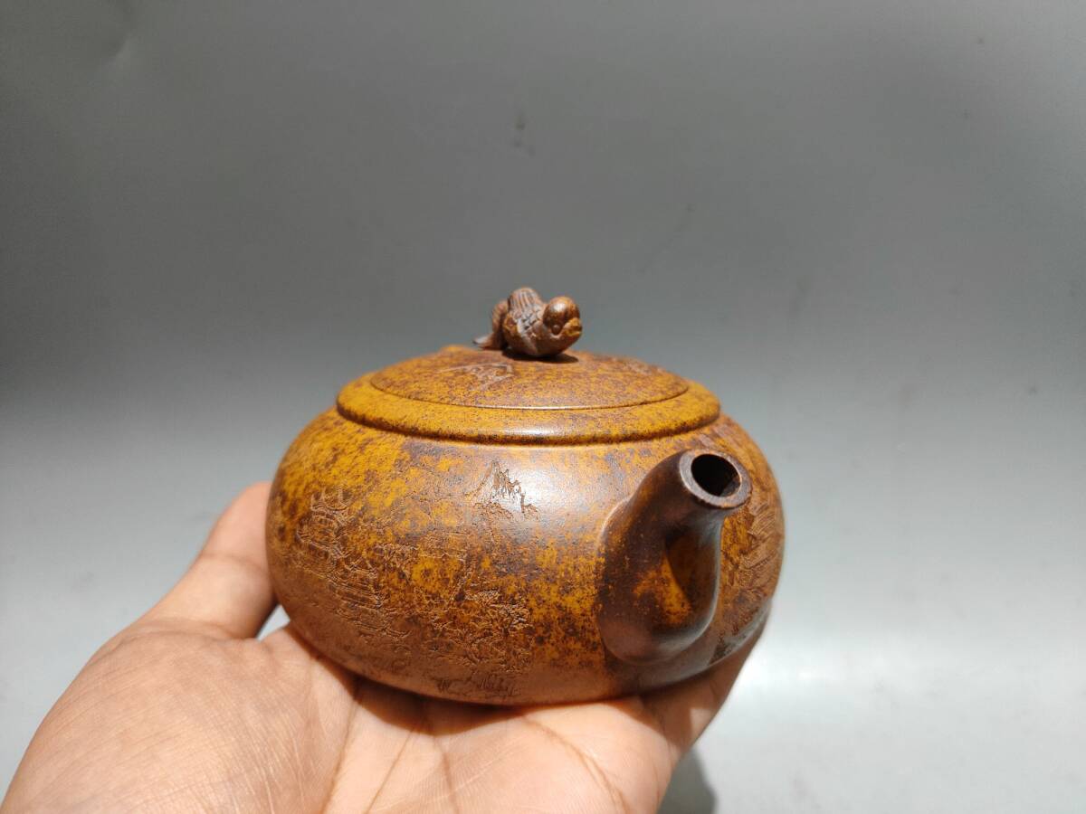 - 蔵友旧蔵出 紫砂壺 半月金魚壺 顧景舟款 原礦龍骨金砂 箱付 茶道品 煎茶道具 文房賞物 希少珍品 中国古玩 中国古美術品