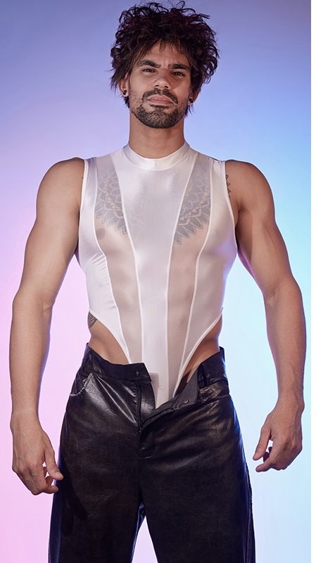 - 新入荷【3187】白 メンズ 艶々 光沢 超セクシー サスペンダーハイレグ レオタード コスプレ シャイニーコスチューム オープンクロッチ