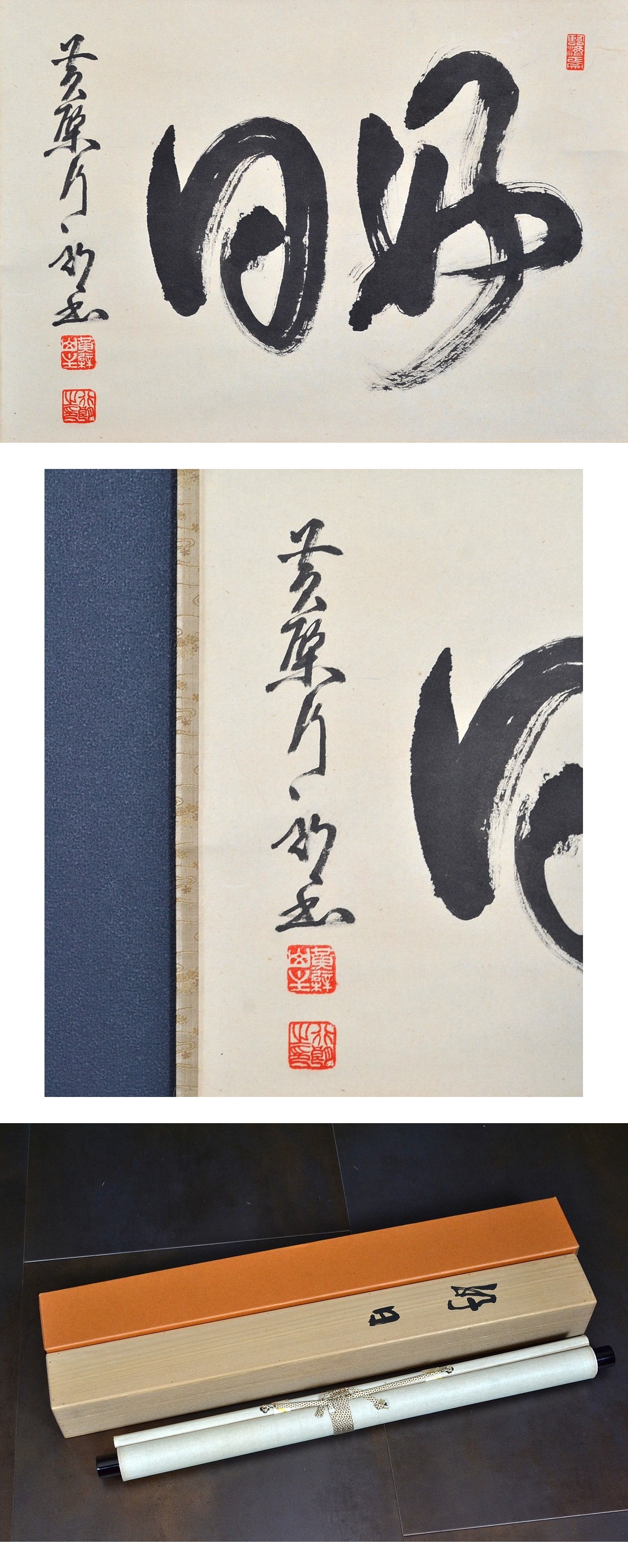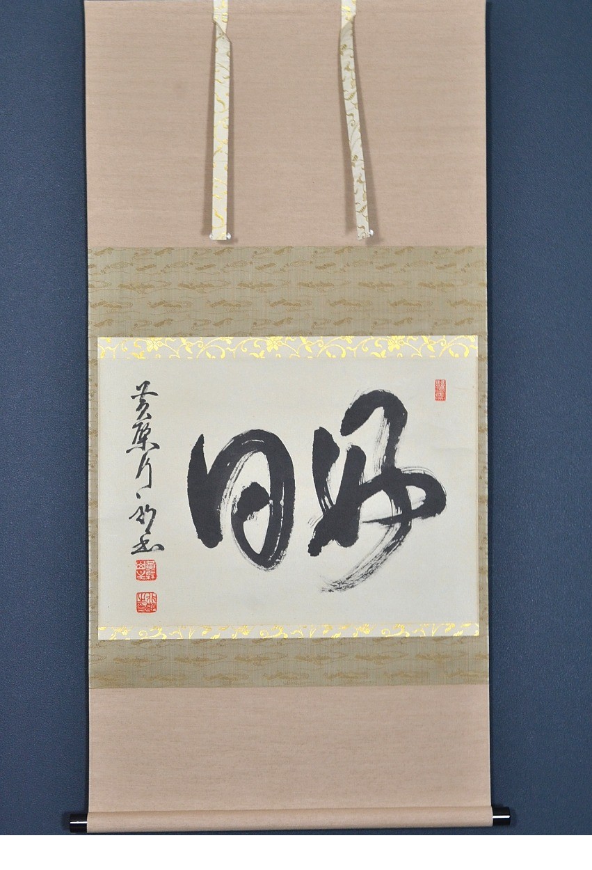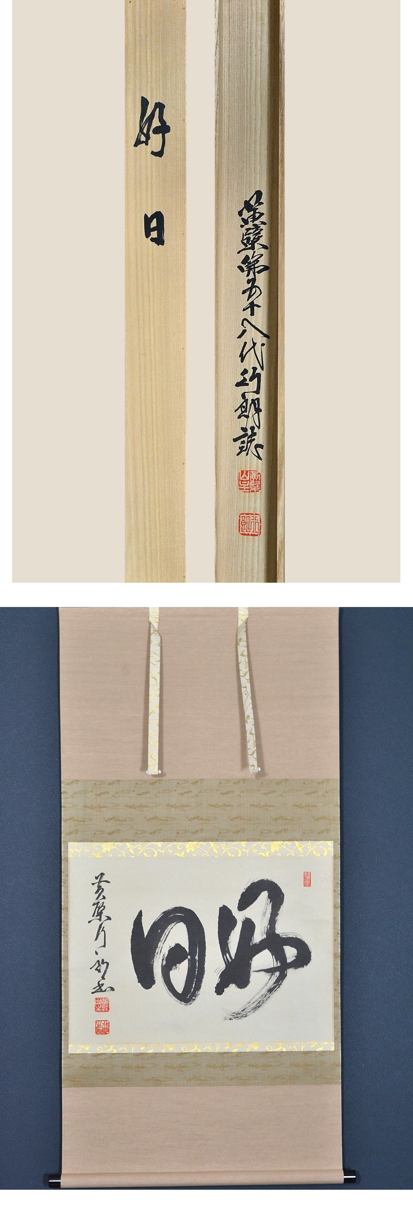 - 黄檗宗 万福寺58世 奥田行朗「好日」真作共箱 萬福寺 茶道具 茶掛け 掛軸 掛け軸