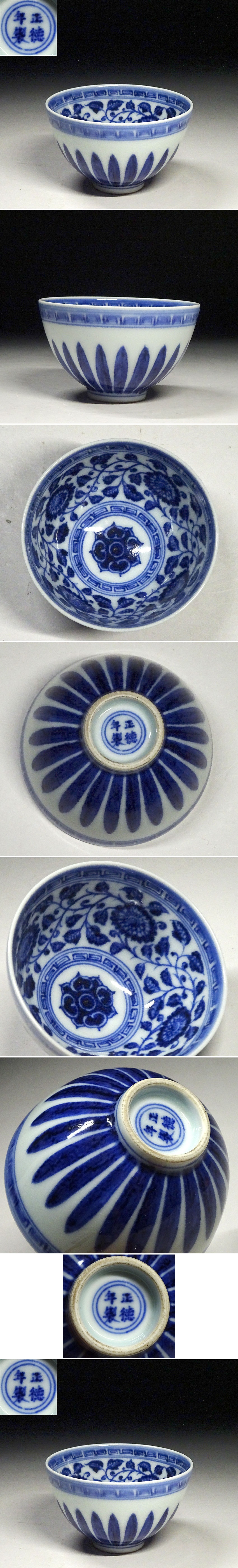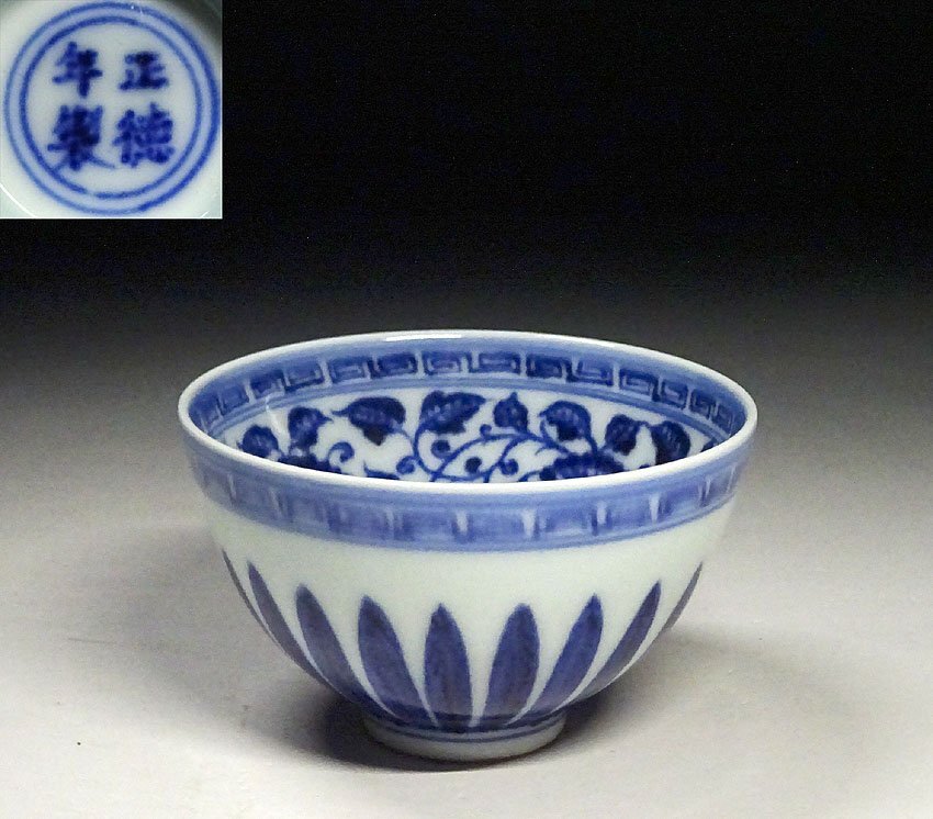 > 緑屋h■ 中国古玩 青花 染付 杯 碗 正徳年製 唐物 時代物 i9/7-7486/29-5#60