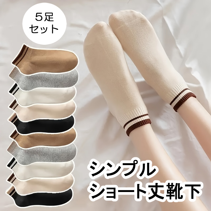 - 【5足セット】ソックス ショート くるぶし 靴下 カフェカラー スニーカー フリーサイズ