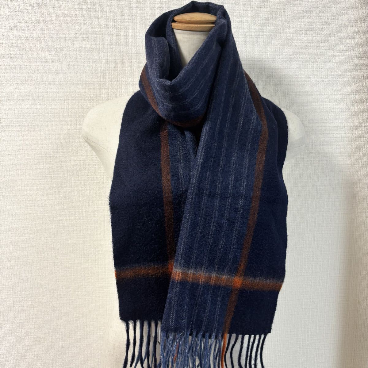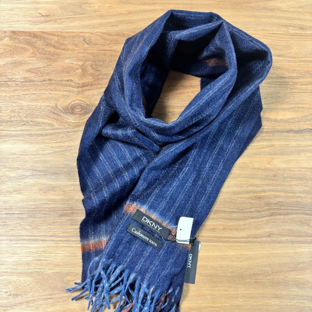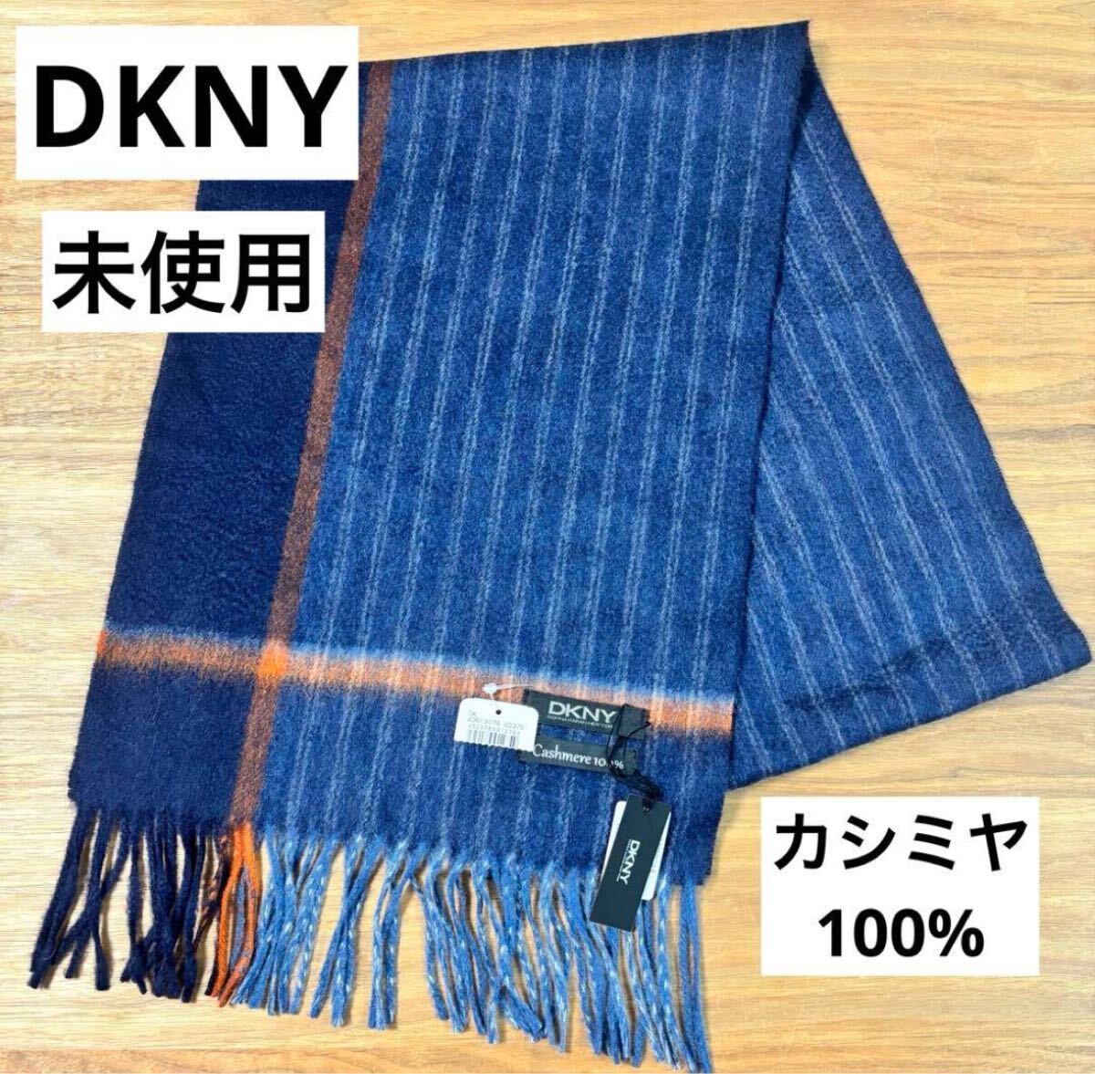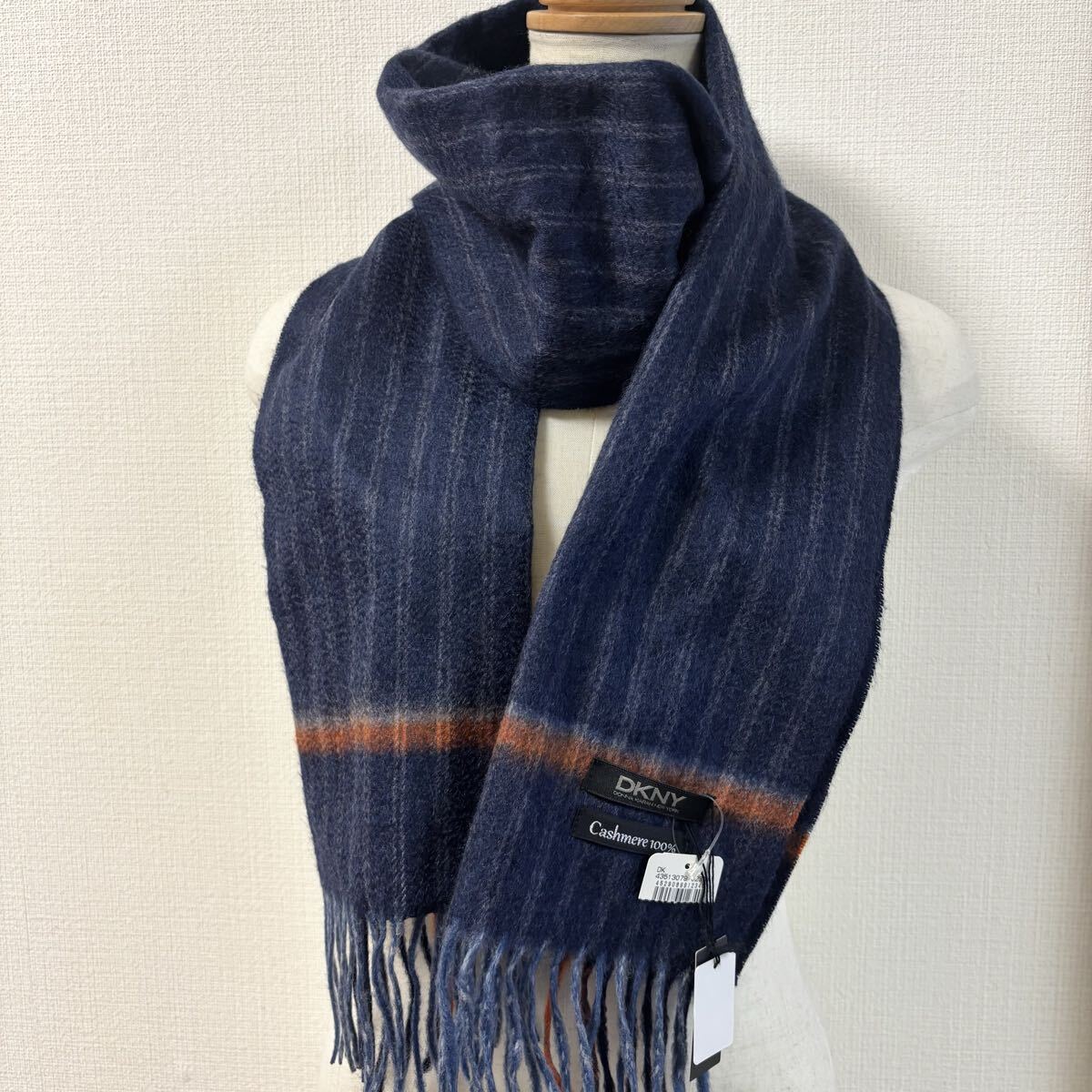 - 未使用◇DKNY◇ネイビー×ストライプ◇カシミヤ100%マフラー