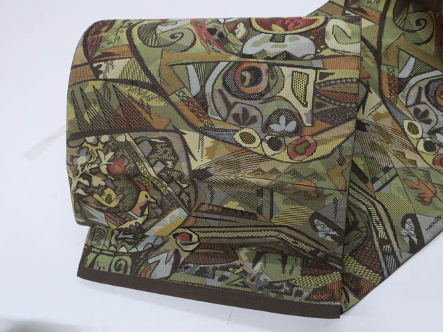 - 《京都一輝堂》リサイクル着物 八寸名古屋帯 六通 花鳥文 正絹 25b07-1104
