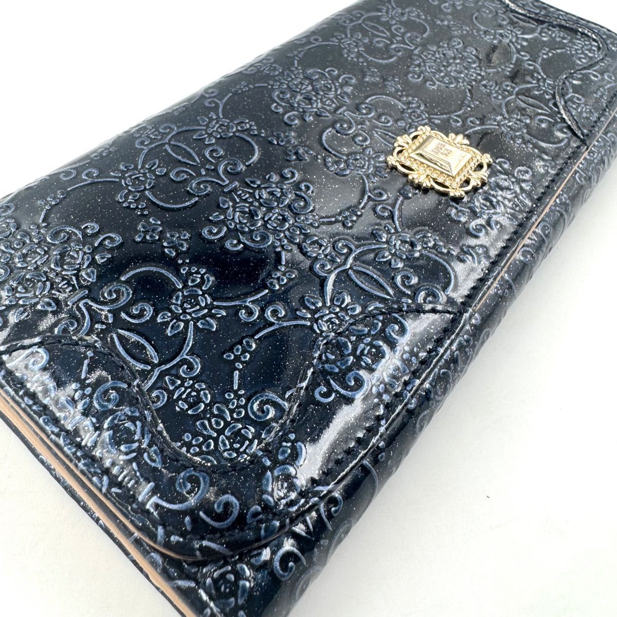 - 【美品】ANNA SUI アナスイ ルーミー がま口 長財布 エナメル ネイビー
