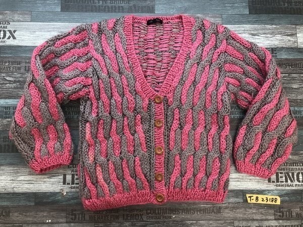 - RAVIS MARIEE レディース 二色ケーブル ニットカーディガン 44 ピンクグレー