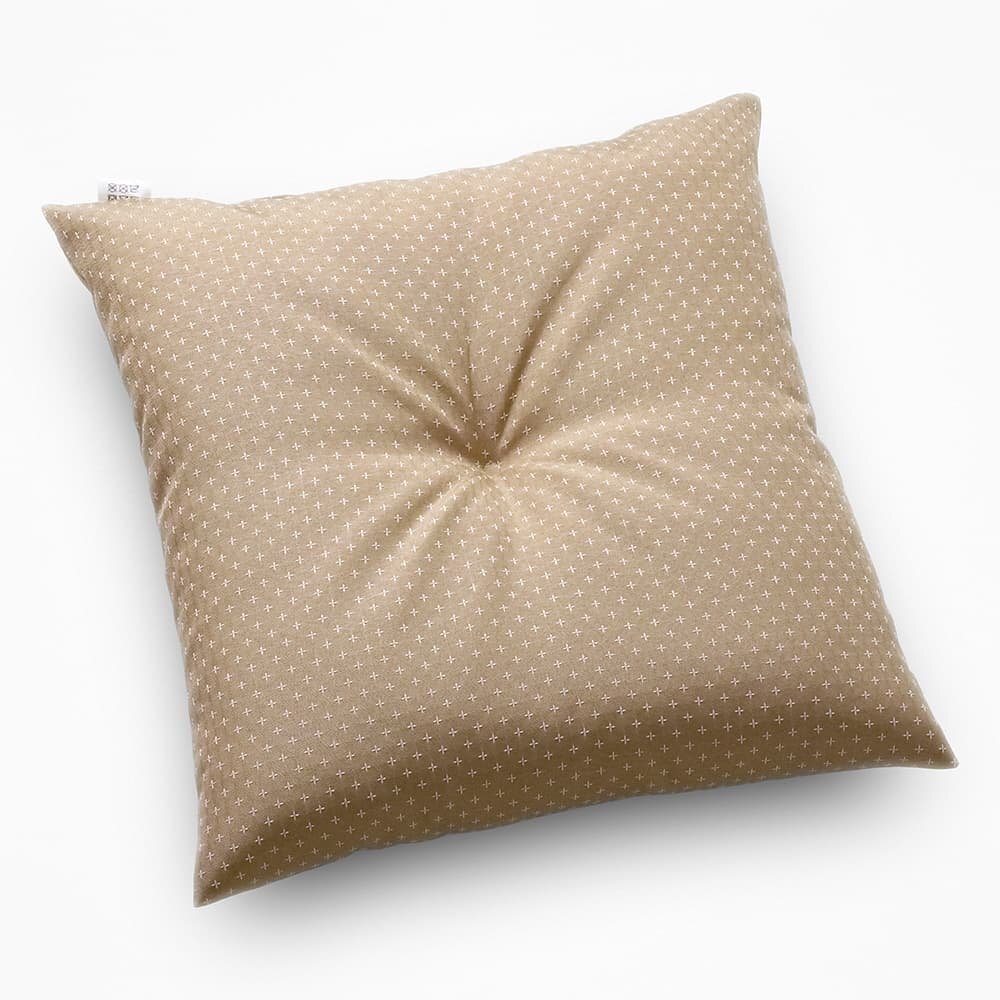 - 茶席判 座布団 日本製 約43×47cm 十字刺子 白茶 しらちゃ ベージュ 和室 和風 和調 クロス柄 素縫い ベンチ 椅子 イス 座ぶとん ざぶとん