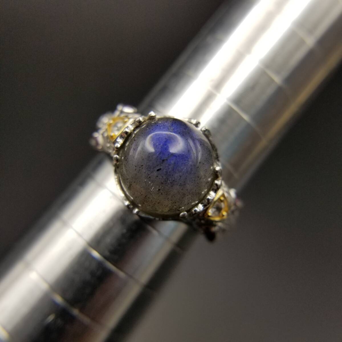 > ラブラドライト ラウンド カボション 925 シルバー リング 指輪 銀 象 サイド装飾 ピンクアイ 大粒 存在感 大きいサイズ R16-S