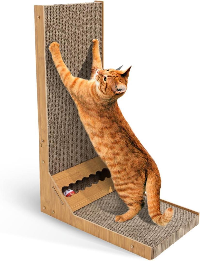 - 猫用L字型スクラッチャー 猫 爪研ぎ 組み立て 音が出るボール付き 猫用 爪とぎ