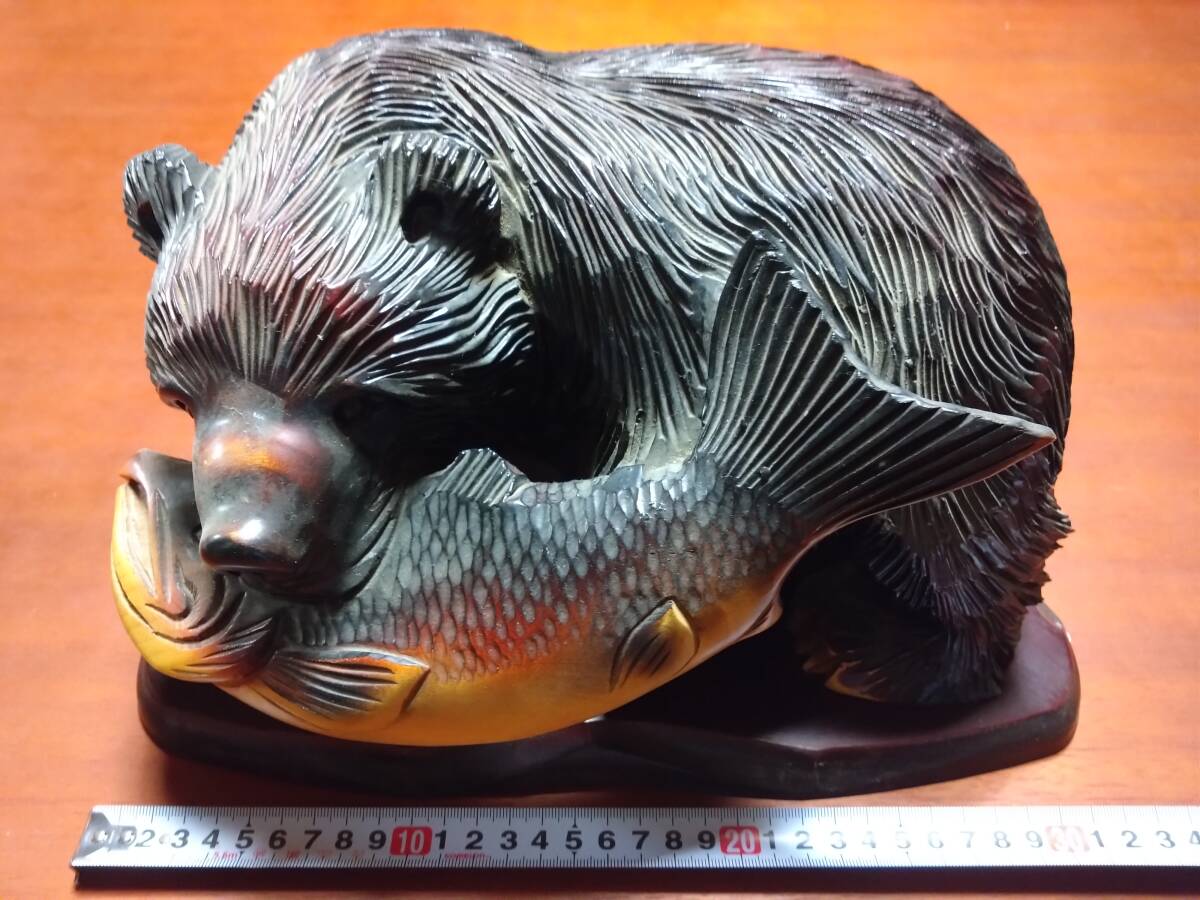 - 北海道 白伊 作 木彫りの熊 台座付き インテリア 小物 置物 民芸品 工芸品