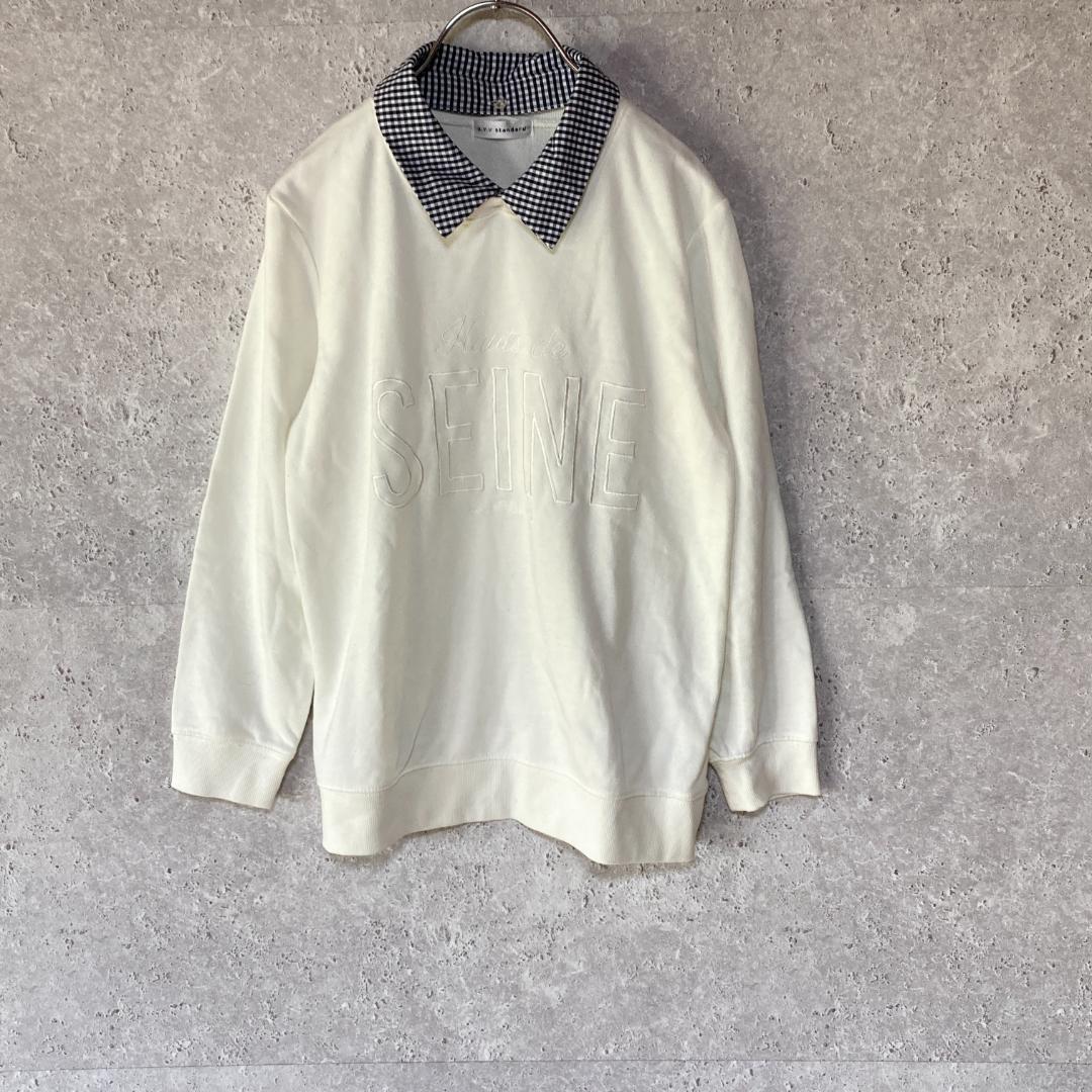 - アーヴェーヴェー(M)襟付きロゴスウエット*襟取り外し*伸縮性*カジュアル*白