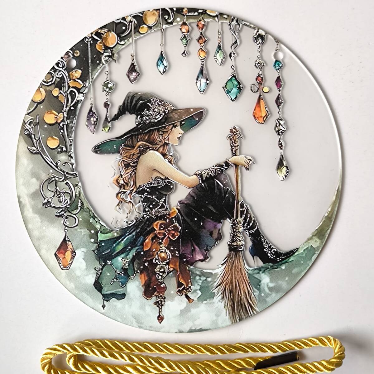 - 【三日月と魔女・宝石・神話】アクリルプレート 飾り サンキャッチャー 紐付き オブジェ お洒落 壁や窓辺の飾りに◎◎