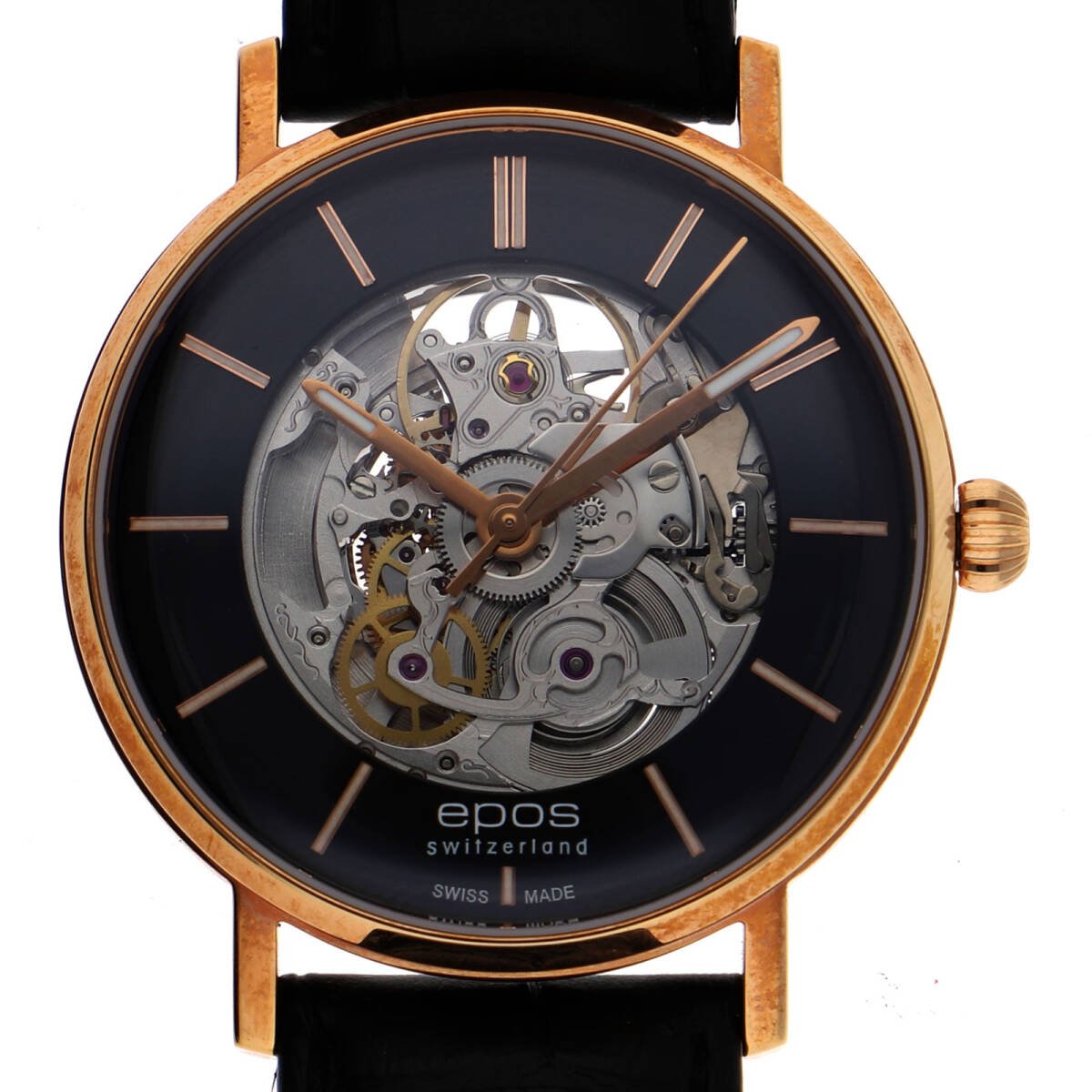- EPOS エポス 3437SKRGBK ブラックダイヤル GP/レザー 自動巻き メンズ【135581】