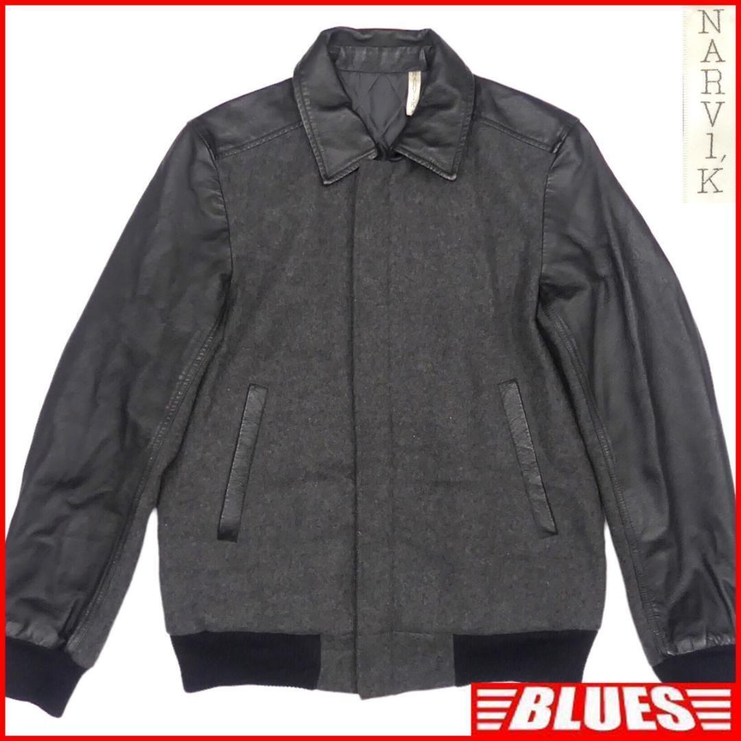 > 即決★NARVIK★メンズM レザーアームスタジャン ナルヴィック 38 グレー キルティング 本革 ブルゾン 本皮 ジャンパー 革ジャン
