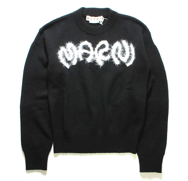 - 新品 MARNI マルニ シェットランド ウール ロゴ クルーネック セーター ニット ブラック 46