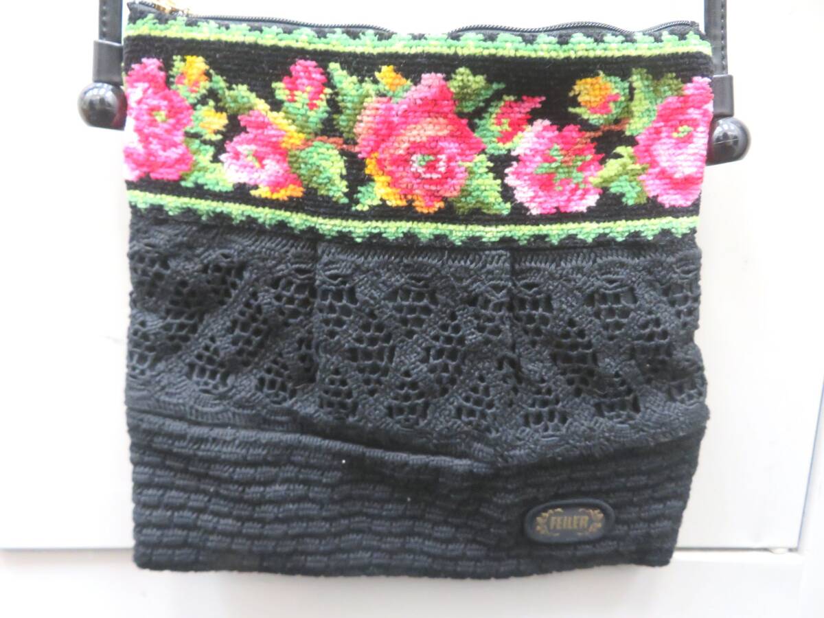 - ●○90344 FEILER フェイラー ショルダーバッグ 花柄 フラワー ブラック 黒○●