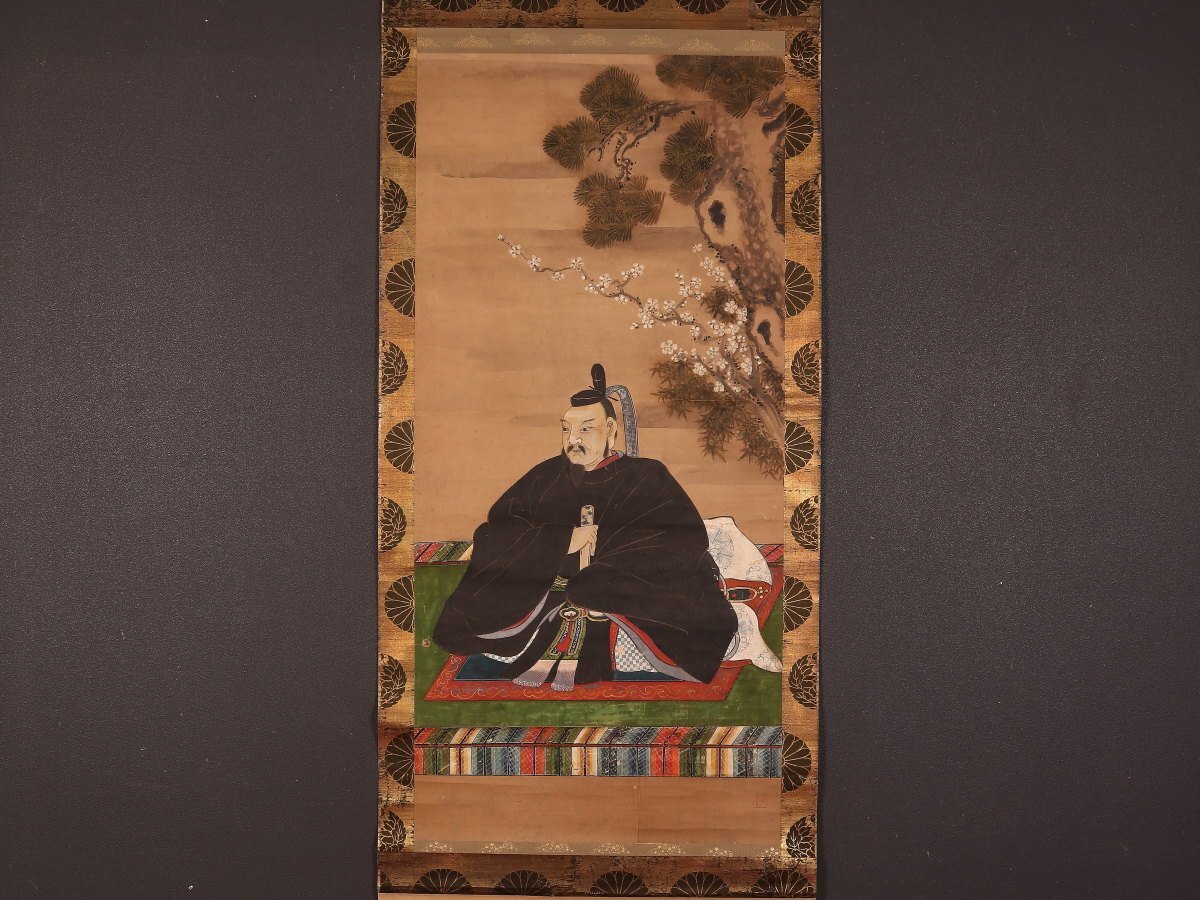 - 【模写】【伝来】am7320〈柳沢淇園〉菅原道真像 菊花紋表具 長崎派 江戸時代中期 天神 菅公 平安時代前期の公卿 学者 中国