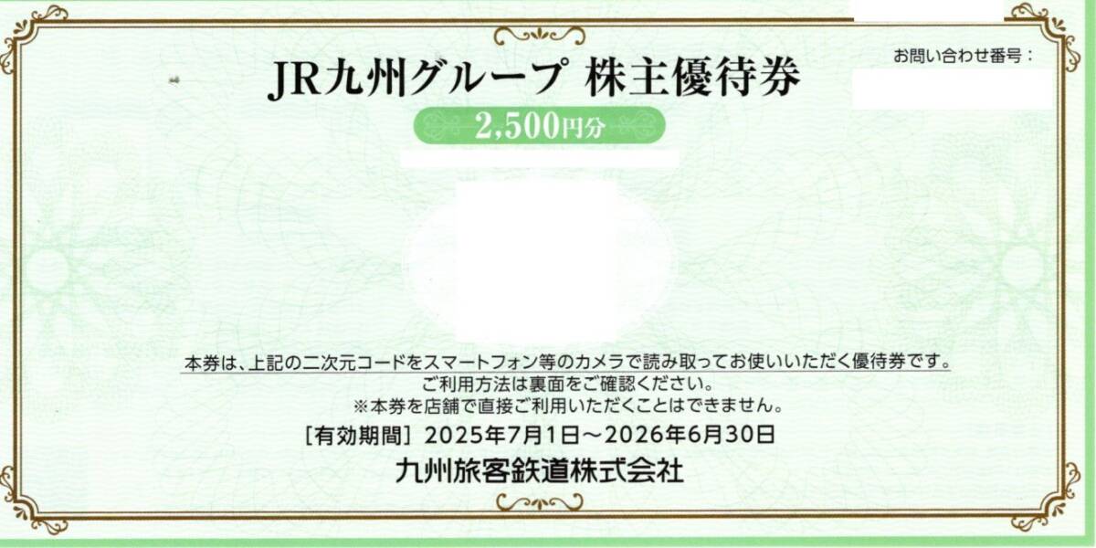 - 【大黒屋】JR九州 グループ株主優待券 2500円券 1枚 2026/6/30まで 株主優待 鉄道