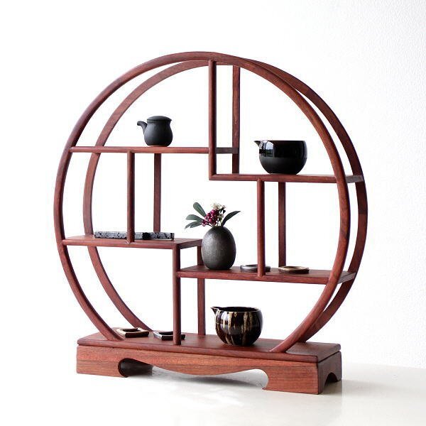 - 飾り棚 和風 和室 床の間 丸形 円形 シノワズリ 珍品棚 盆栽棚 コレクションラック 和のコレクション棚 丸 送料無料(一部地域除く) swa4239