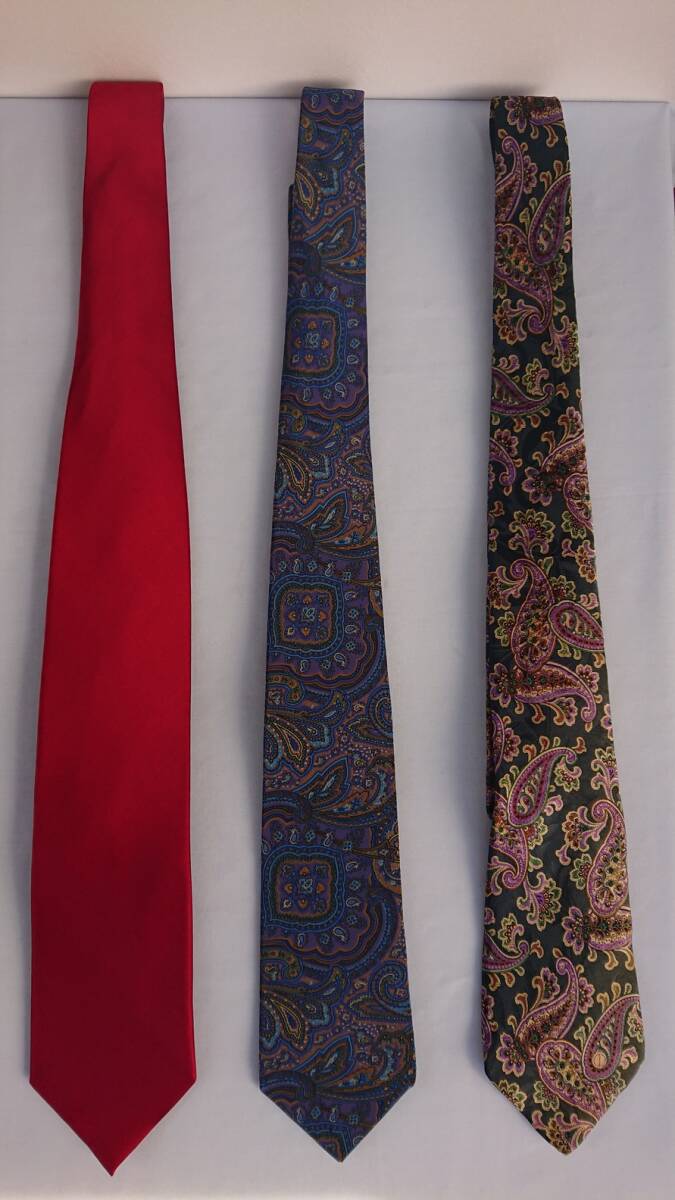 - 【中古美品】メンズネクタイ☆3本☆エンジ無地(サテン生地 光沢アリ)☆Guy Laroche☆DUN HILL(ダンヒル)⑧