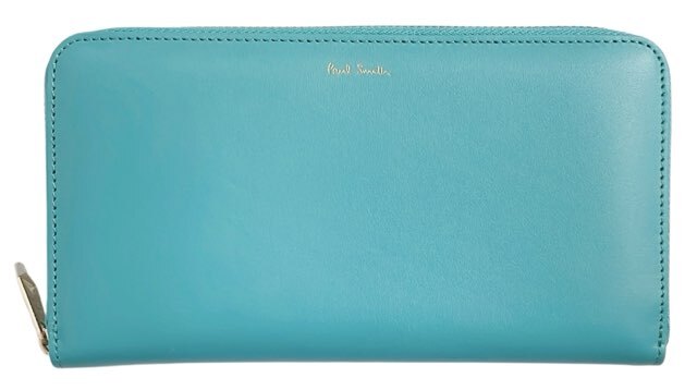 - 未使用 ポールスミス ラウンドファスナー 長財布 ターコイズ ブルー 水色 ストライプ レザー Paul Smith 【中古】