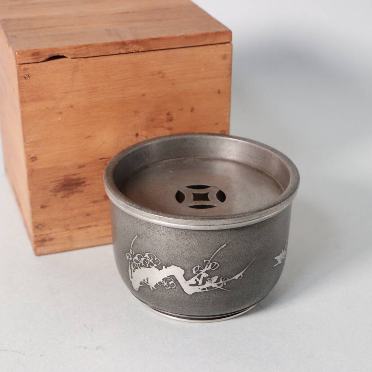 - 古錫 林克瑞製 建水 煎茶道具 水盂 茶こぼし 茶道具 唐物 錫製 灰入 F0927C10