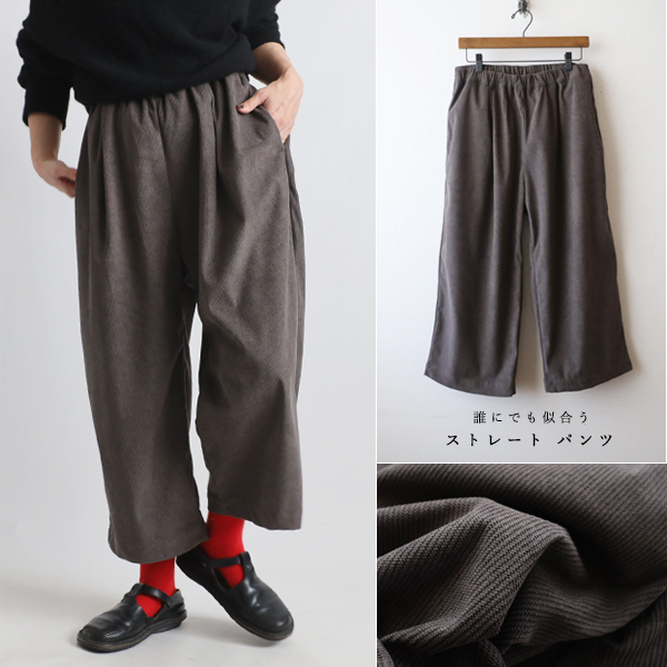 - 秋の新作 85cm コーデュロイ生地 誰にでも似合うストレートパンツ ゆったり グレー K31A