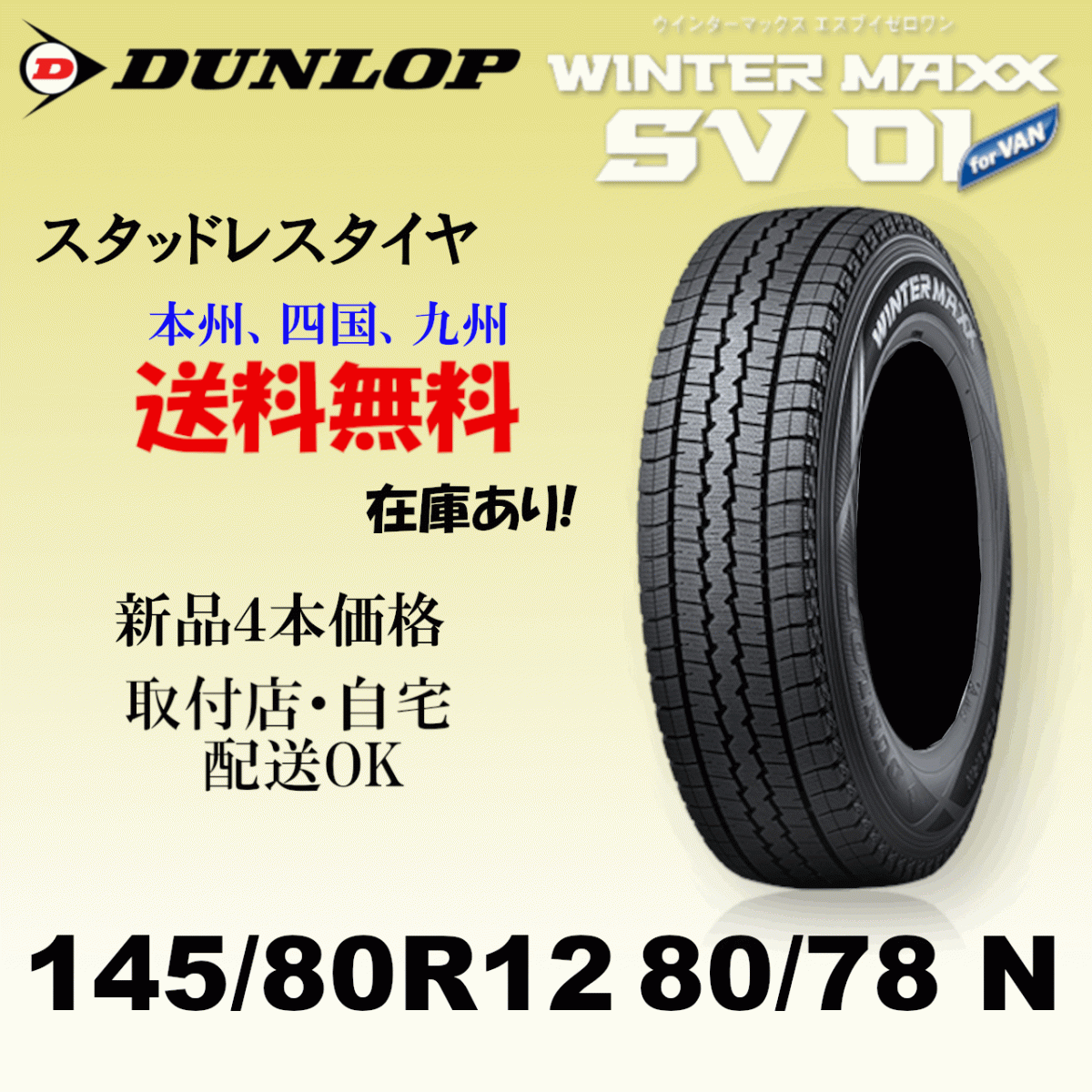 - 145/80R12 80/78 N 送料無料 4本価格 在庫あり 即納可 2024年製 ダンロップ スタッドレスタイヤ ウインターマックスSV01