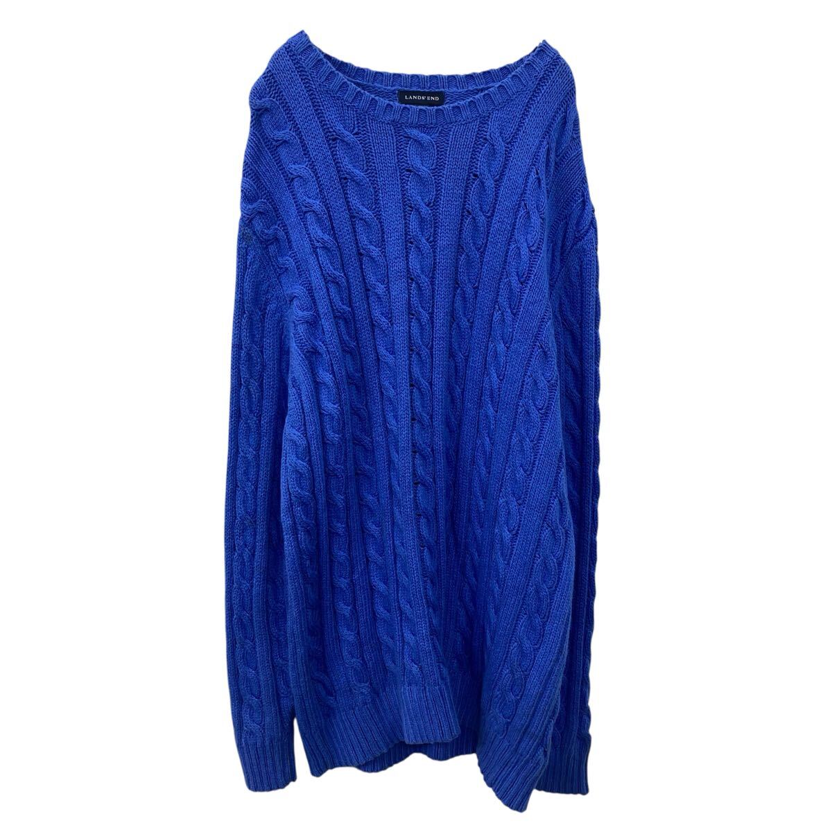 - a710-5198 LANDS'END コットンニット セーター XXL ブルー ランズエンド コットン100% シンプル 無地セーター ビッグサイズ 秋物