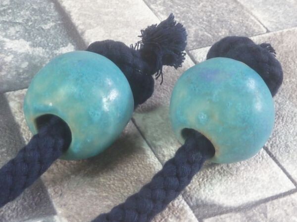 - C16【帯締め】 和装 和服 正絹飾りひも トンボ玉付 /ブルー系 日本製 全長2.2m