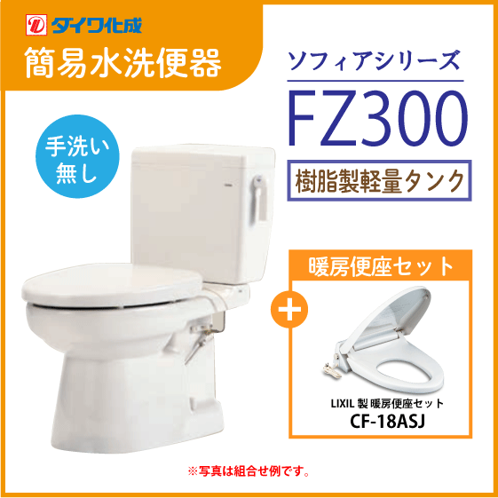 - 簡易水洗便器 簡易水洗トイレ クリーンフラッシュ「ソフィアシリーズ」 FZ300-N00(手洗なし)・暖房便座セット ダイワ化成