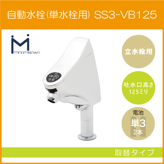 > 自動水栓 センサー水栓 立水栓用(吐水口高さ:125ミリ) 取替タイプ SS3-VB125 ミナミサワ SuiSui SINGLE スイスイ