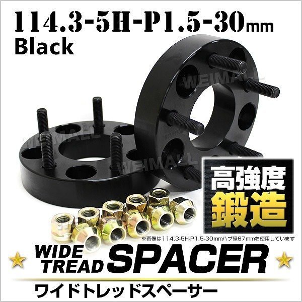 > Durax ワイドトレッドスペーサー 30mm 114.3-5H-P1.5 ナット付 黒 2D トヨタ 三菱 ホンダ マツダ ダイハツ 2枚セット ホイールスペーサー
