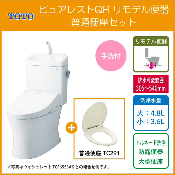 - 便器 ピュアレストQR リモデルタイプ(手洗付) 普通便座セット CS232BM,SH233BA,TC291 TOTO リフォーム用便器 ★