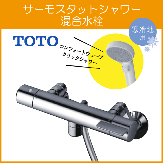 - 壁付サーモスタット混合栓 サーモシャワー 吐水パイプ 0mm コンフォートウェーブクリック 寒冷地仕様 TBV03410Z1 TOTO GGシリーズ