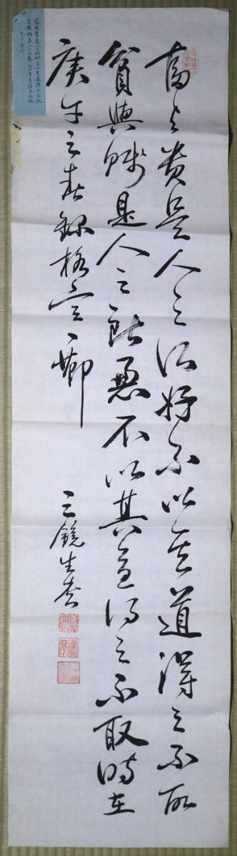 - sgk5) 漢亭 黄泗銓 三鏡齋 三行書「漢詩文」墨書 紙本 捲り・解読文紙片/ピン留め有り <中国書画