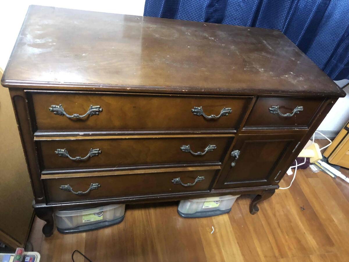 - 昭和レトロ ローチェスト 鏡台下部 ドレッサー サイドボード 洋風家具 アンティーク調 木製 整理箪笥 3段引出 飾り棚【直接引き取り推奨】