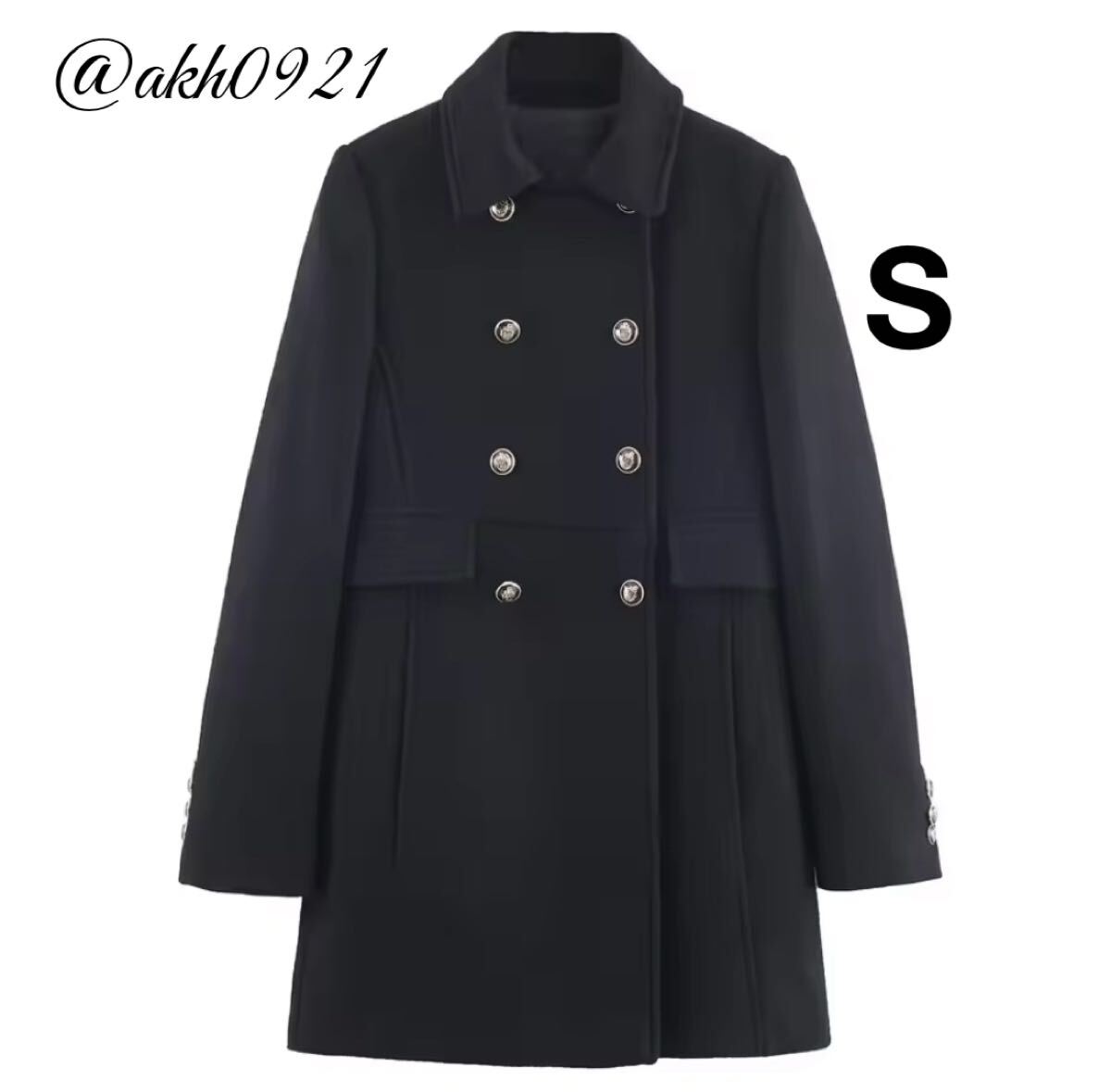 > 新品未使用★2025 A/W 秋新作★vintage ヴィンテージ レトロ black ダブルボタン コート アウター Sサイズ レディース★ZARA 好きな方に