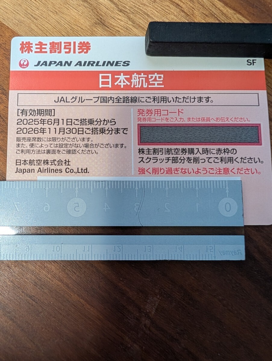 - JAL株主優待券 日本航空 発券用コード通知のみ