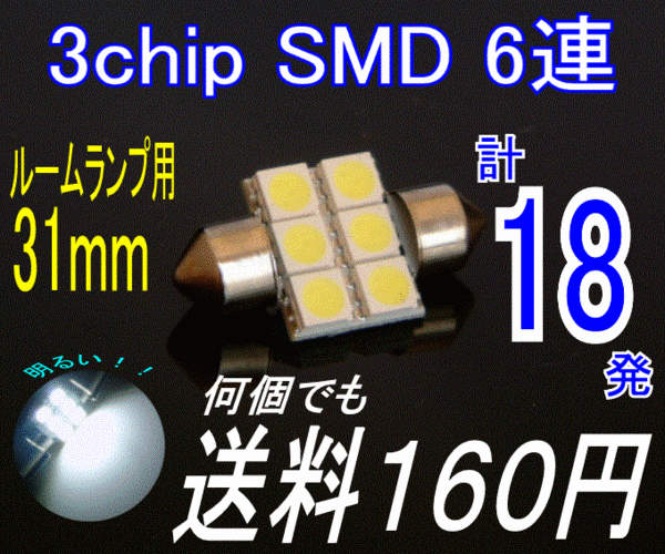- 【みねや】T10×31mm★3chip SMD 6連★送料→何個でも160円!