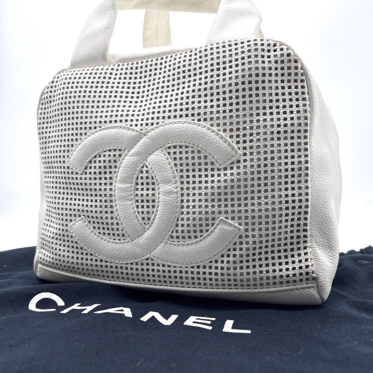 - CHANEL シャネル キャビアスキン デカココマーク パンチング ハンドバッグ バック 鞄 カバン ホワイト 白 9番台 レディース