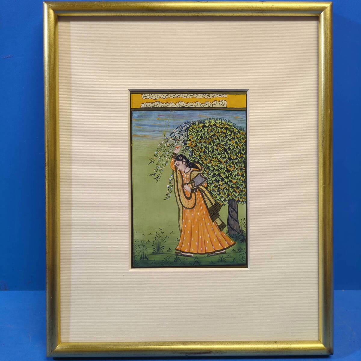 - kankando『インド細密画 ミニアチュール 斧を持つ女』16×10.5cm 額装 時代があります!画像をご覧下さい!