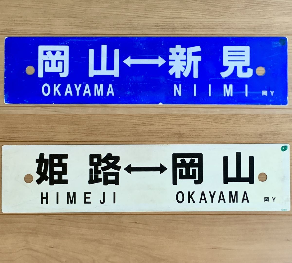 - D 国鉄 JR 山陽本線 伯備線 岡山 ⇔ 新見 / 姫路 ⇔岡山 岡Y 両面タイプ 行先表示板 行先板 プレート プラサボ プラスチック 234-6