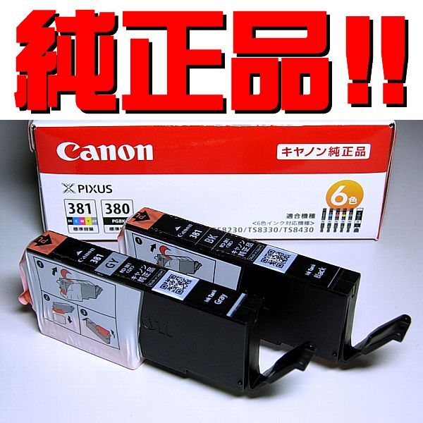 > ◆ 送料込!新品!キャノン純正 インクカートリッジ 標準容量 ブラック BCI-381BK / グレー BCI-381GY 6色機 TS8130/TS8230/TS8330/TS8430